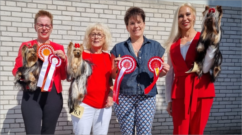 Von links nach rechts: »Golden Sun from little Lighthouse« (BJH), Z+B: Beate Seyler – »Isabella von Stutenpferch« (BOS), B: Monika Uphagen – Frau Tanja Gruber (Richterin) – »Bella Helvetica Edouard Le Petit Prince« (BOB), Z+B: Tatjana Schmid  / CH...