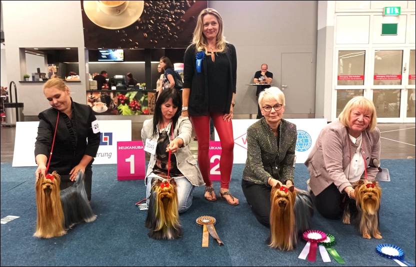 »Guess Dark Luna« (VDH-Vet.-Frühjahrssieger), B: Natalia Pirkova / SK – »Dazzlingshine Absolute Power« (VDH-Frühjahressieger / BOB), B: Kerstin Meyer – Frau Dana Zimmerling (Richterin) – »First Love Fancy Diamond« (VDH-Frühjahrssiegerin / BOS), Z+B: Jacqueline Theilemann – »Nike« (VDH-Frühjahrs-Jugendsiegerin /BJH), B: Gisela Köchig / BE (Foto: Brigitte Lichtenthaeler).